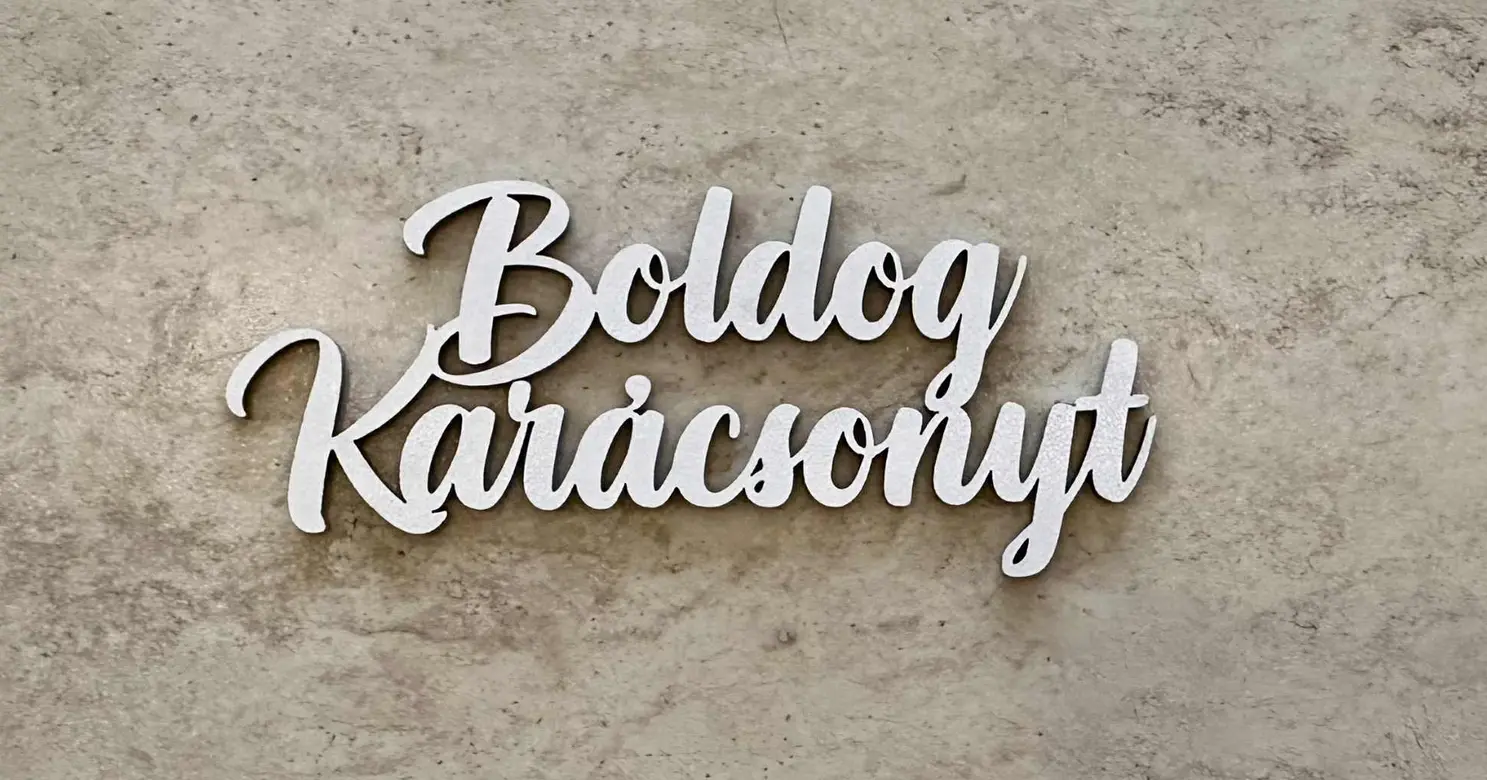 Prima pagină Articole de lemn Scrisuri Scris „Boldog Karácsonyt” (alb)