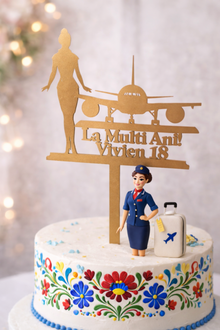 Topper Tort ‘La Mulți Ani’ – Însoțitoare de Zbor