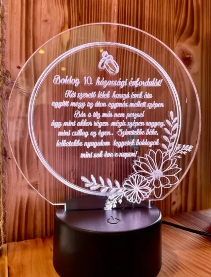 Lampă 3D personalizată rotundă ”Boldog házassági évfordulót…”
