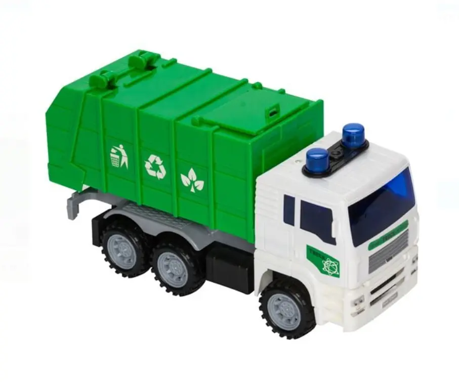 Vehicul juărie pentru băiat, camion de deseuri pentru materiale de reciclat cu sunete realistice și lumini. Funcționează cu 3 baterii LR44 (incluse).
